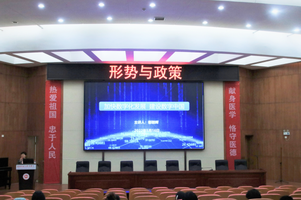 5月16日晚,我院党委书记鄢朝晖于仁医楼学术报告厅为21级新生讲授《加快数字化进程,建设数字中国》形势与政策课。21级临床二班与检验班全体学生参加此次课程。