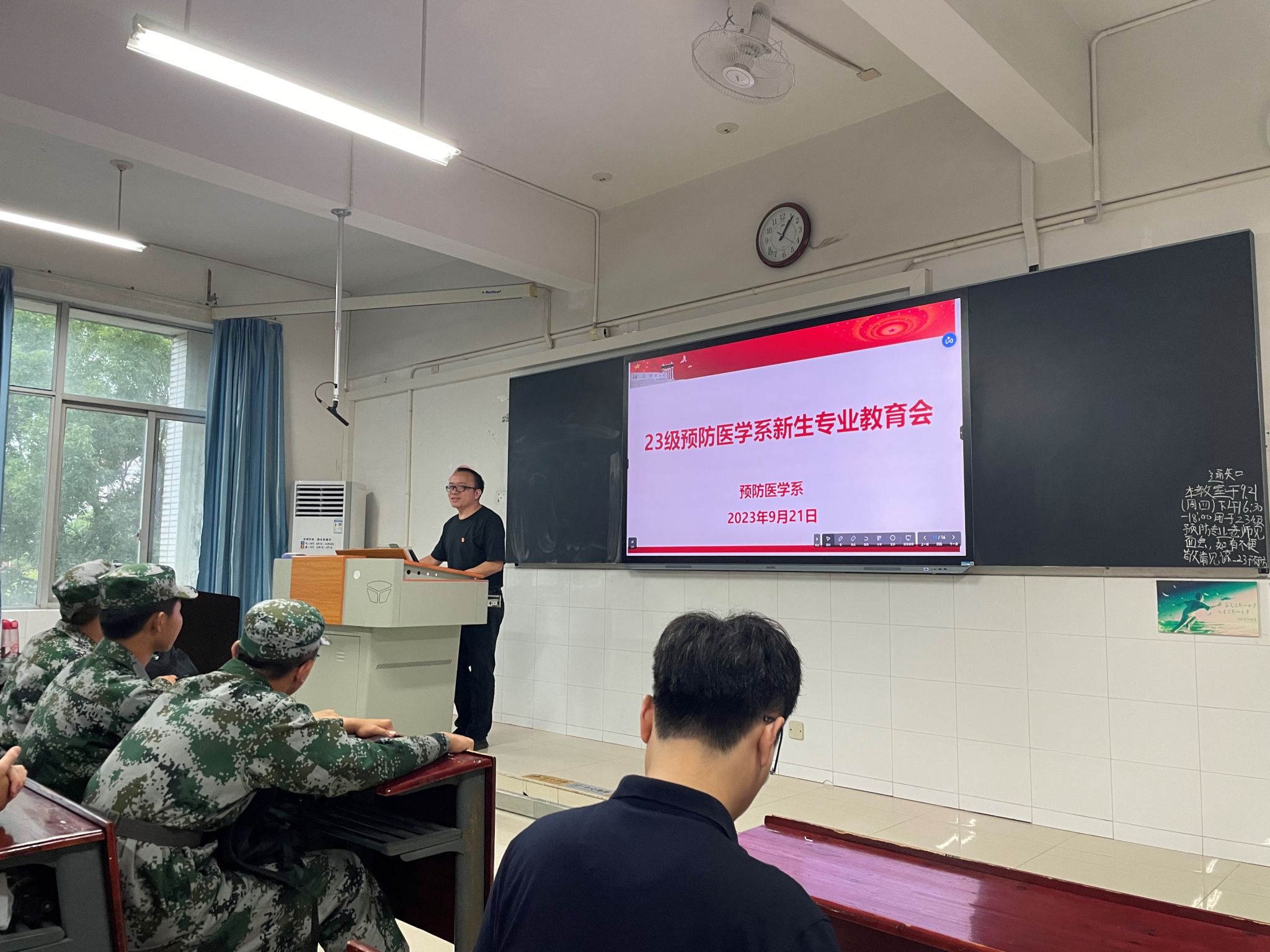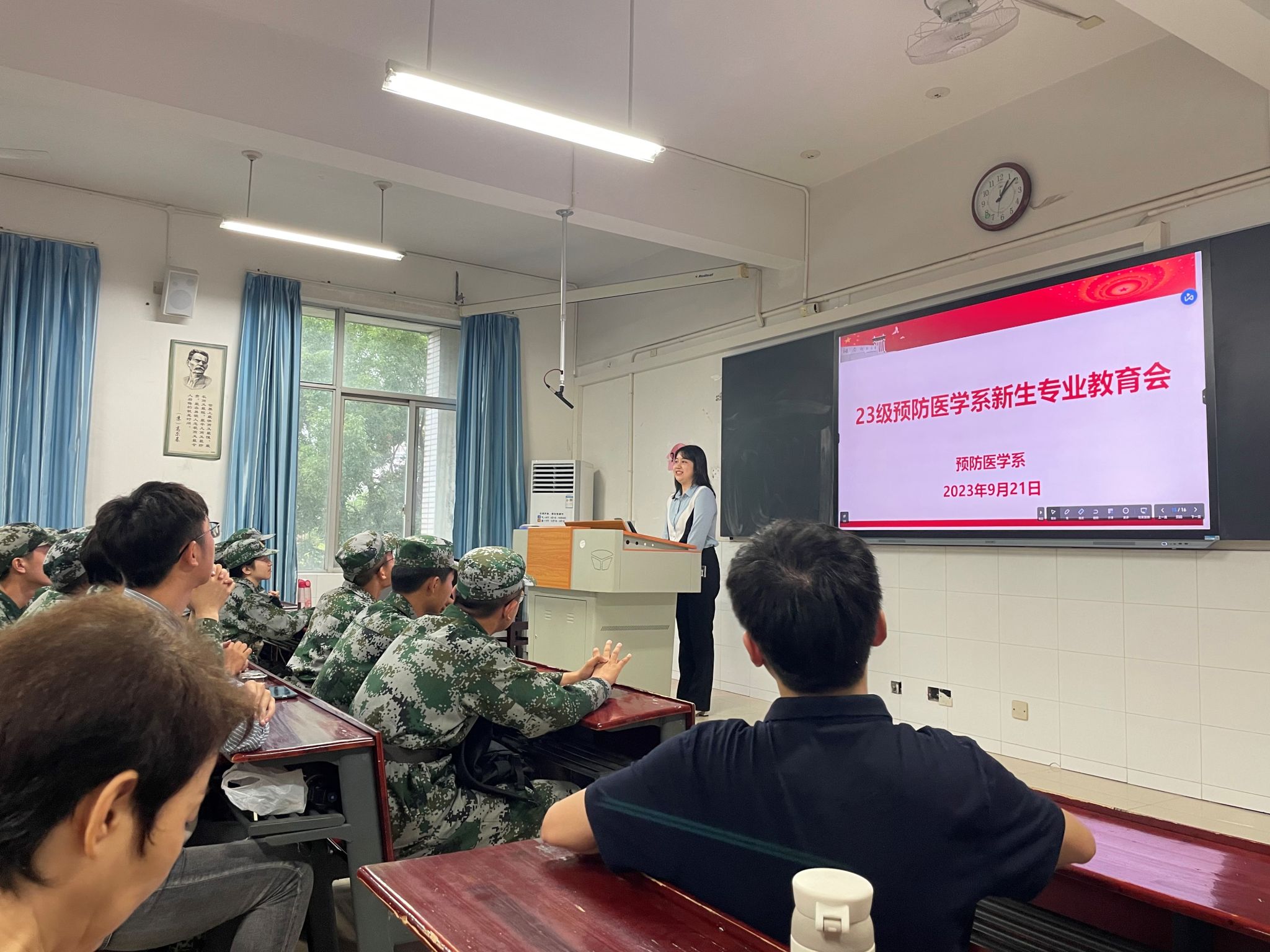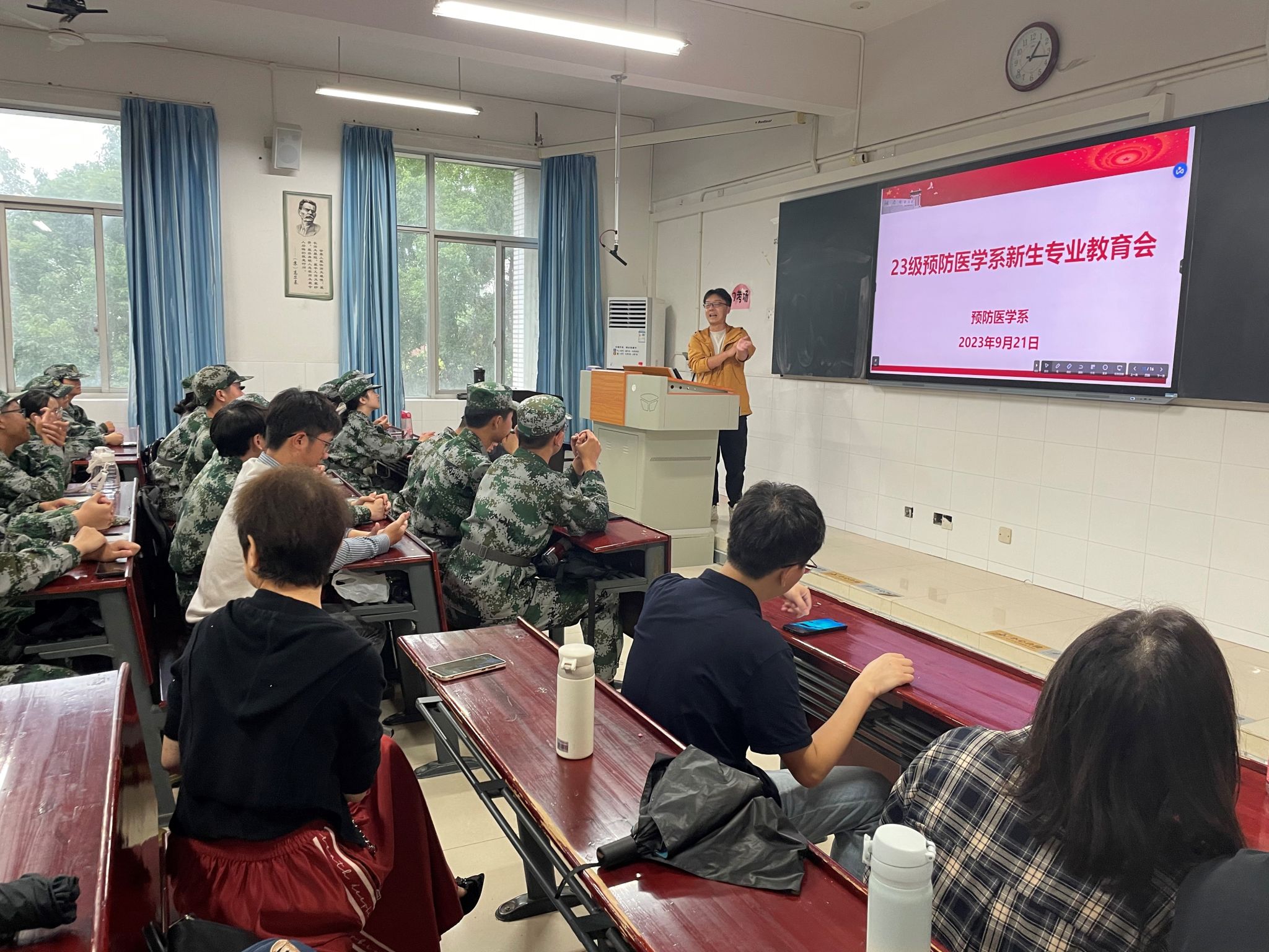 9月21日,预防医学系在仁医楼203教室开展23级预防医学系新生入学教育会,预防医学系教师代表,高年级学生代表参加了会议,会议由系主任兼支部书记陈适主持。