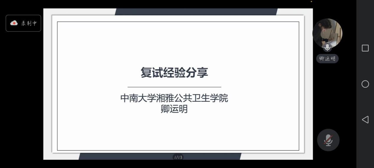 3月15日中午,我院举行考研复试指导暨经验线上分享会。院长何祖平、党委书记鄢朝晖、党委副书记陈松和学工办辅导员出席会议。2018级卓医班毕业生旷伟宏,2018级预防班毕业生卿运明受邀参与会议,我院2024届毕业生参加会议。此次会议由学工办与学生会联合举办,20级辅导员郜江洪和2023级陈海花同学共同主持。