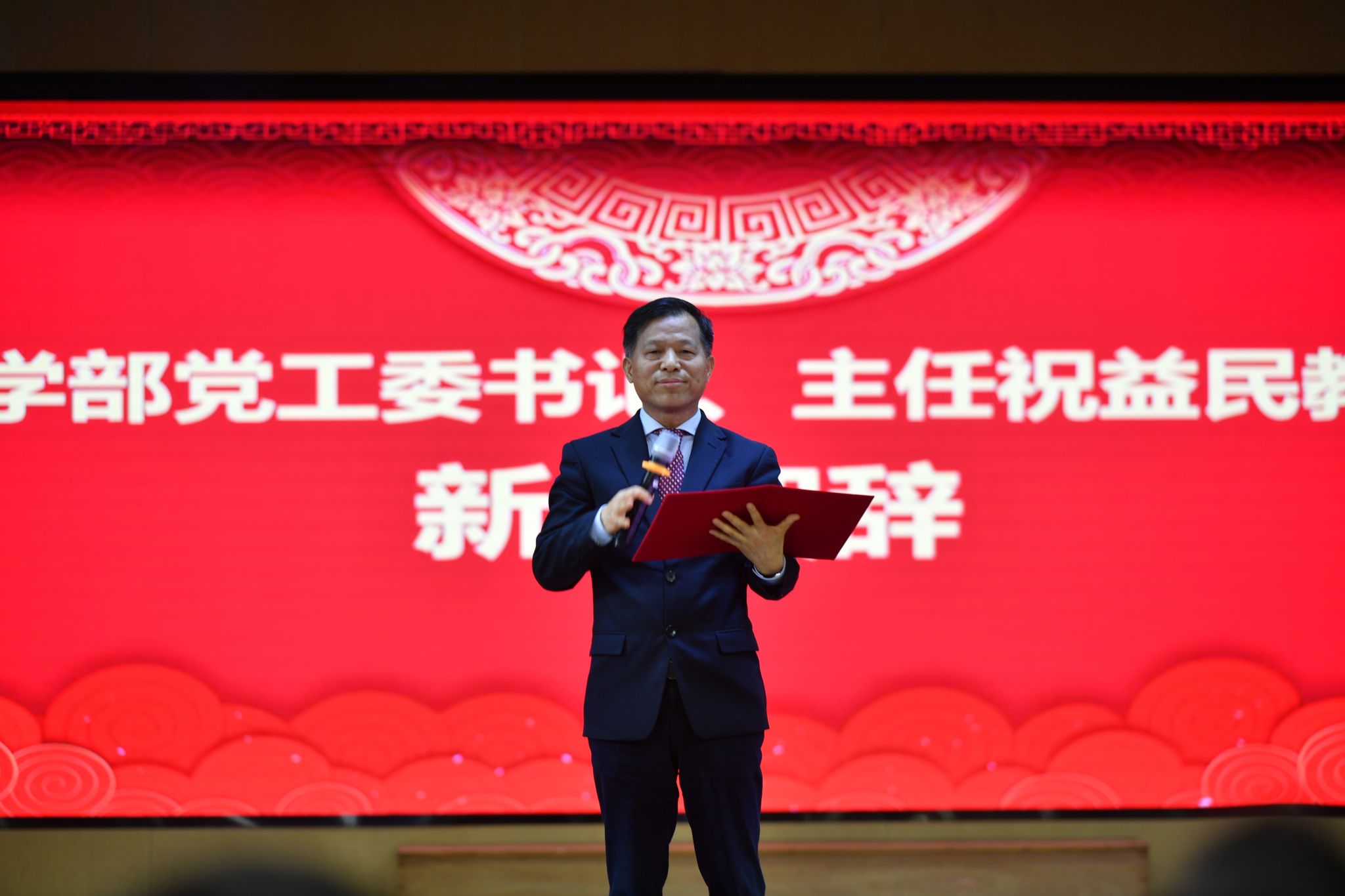 祝益民在新年致辞中回顾了2024年医学部在党建引领发展、本科生与研究生培养、科教研协同发展取得的成效,鼓励全体人员在新的一年继续以习近平总书记对高校立德树人工作的指示精神为根本遵循,落实学校党委的期望,为形成有优势的师大医学、探索有特色的师大医学部、建设有内涵的师大医学教育踔厉奋发、守正创新!