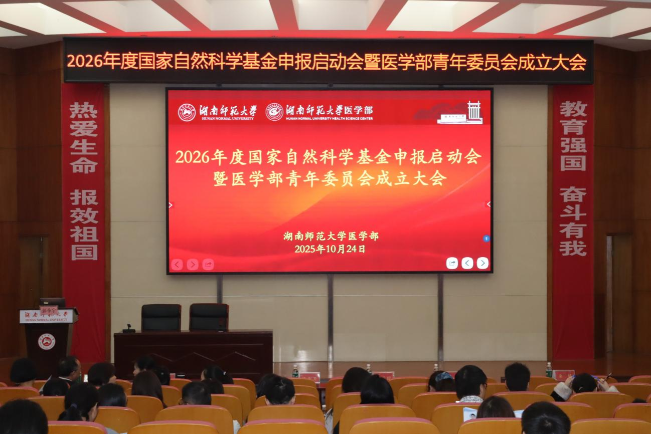 2025年10月24日至25日,湖南师范大学医学部2026年度国家自然科学基金申报启动会暨医学科研能力提升专题培训班在医学部学术报告厅成功举行。会议特邀多位国内知名专家进行授课,校科技处处长唐东升教授、医学部党工委书记、主任祝益民教授出席开班仪式并讲话,仪式由医学部副主任、医学科技处处长彭小宁教授主持。