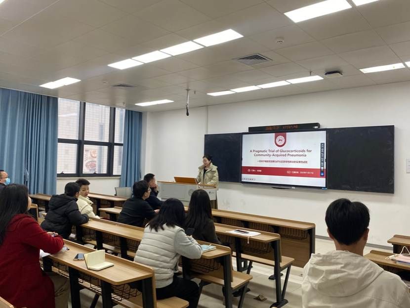 比赛中,三位青年教师带来了精彩纷呈的文献报告。任亚璇老师以“一项关于糖皮质激素治疗社区获得性肺炎的实用性试验”为题,条理清晰、逻辑严密,从研究背景、试验设计、核心内容到结果分析,层层深入,为听众抽丝剥茧详细解析了该前沿临床研究。