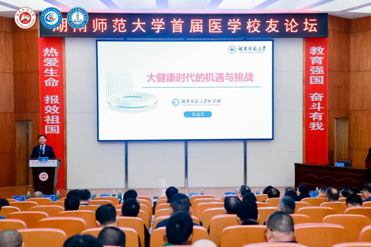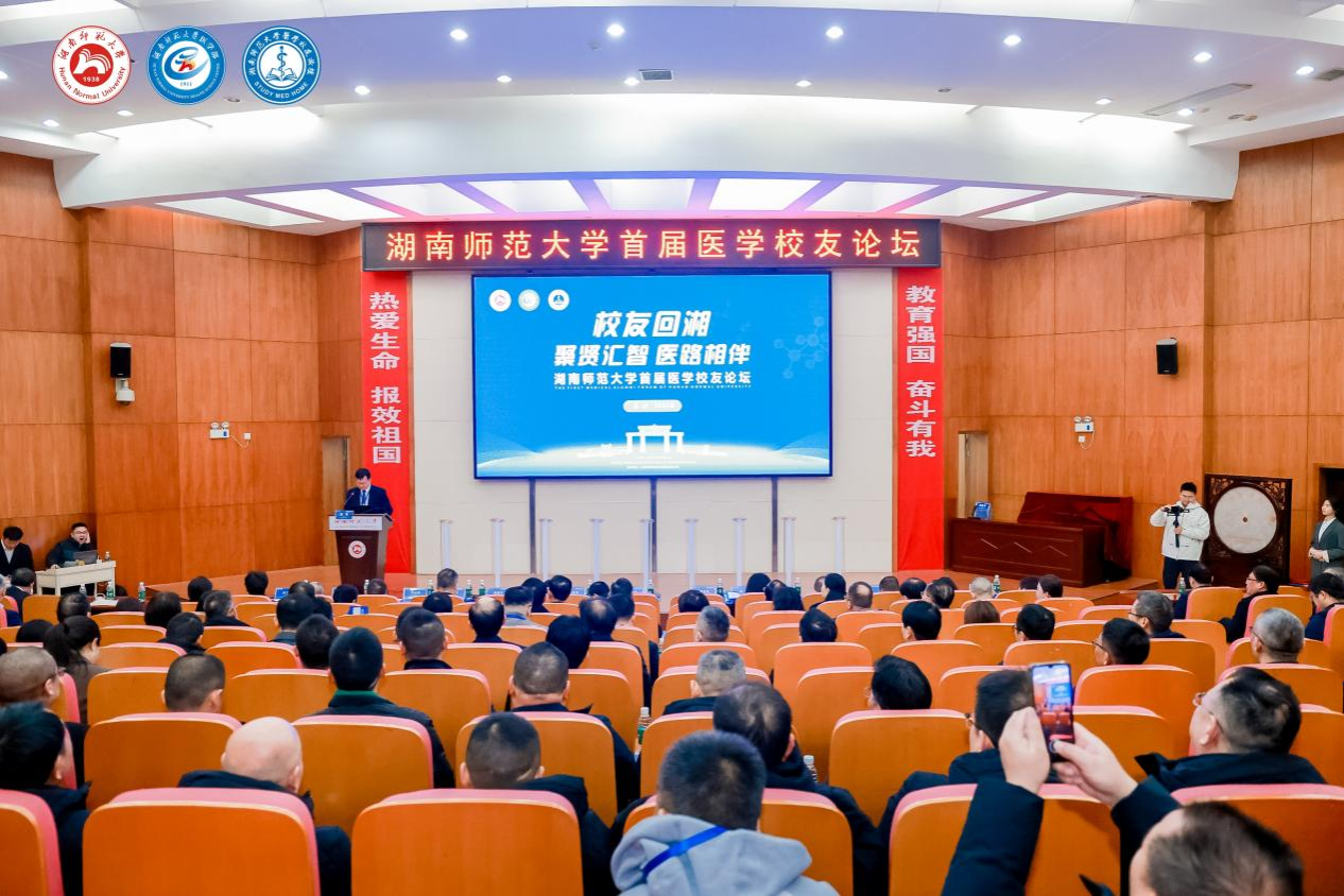 冬日星城,暖意涌动;湘江之畔,贤才云集。12月6日,湖南师范大学医学部气氛热烈,以“校友回湘,聚贤汇智,医路相伴”为主题的首届医学校友论坛在此举行。600余名来自全国各地的“回湘”的医学校友、医学领域专家学者及师生代表齐聚母校,共叙乡情友谊,共谋发展大计。这是湖南师范大学积极响应湖南省委、省政府“校友回湘”号召的生动实践,标志着学校在凝聚校友力量、推动医学教育与医疗事业高质量发展方面迈出坚实步伐。