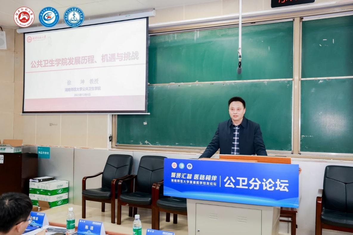 公共卫生学院副院长徐坤以《发展历程、机遇与挑战》为题作院情报告。他表明,学院现已形成“本-硕-博”完整培养体系,拥有省重点实验室等多个科研平台;未来五年将聚焦“健康湖南”需求,重点布局慢性病防控、环境健康风险评估和数字公共卫生三大方向。