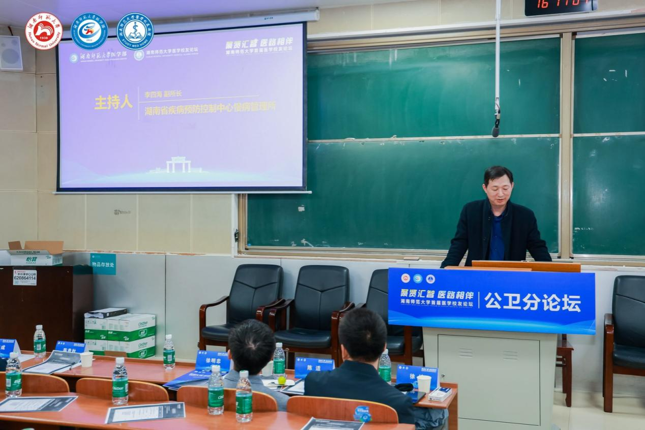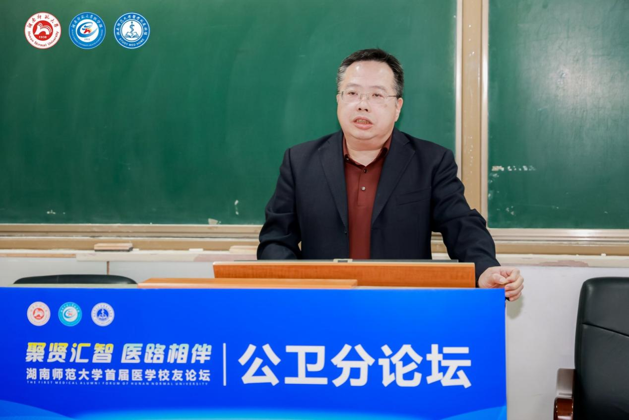 论坛尾声,湖南省疾病预防控制中心慢病管理所副所长李四海作总结发言。他表示,校友们的真知灼见为学院更新人才培养方案、深化校地合作提供了宝贵思路。期待下一届论坛把更多‘师大公卫人’汇聚在一起,让母校成为湖南乃至全国公共卫生事业高质量发展的强劲引擎。