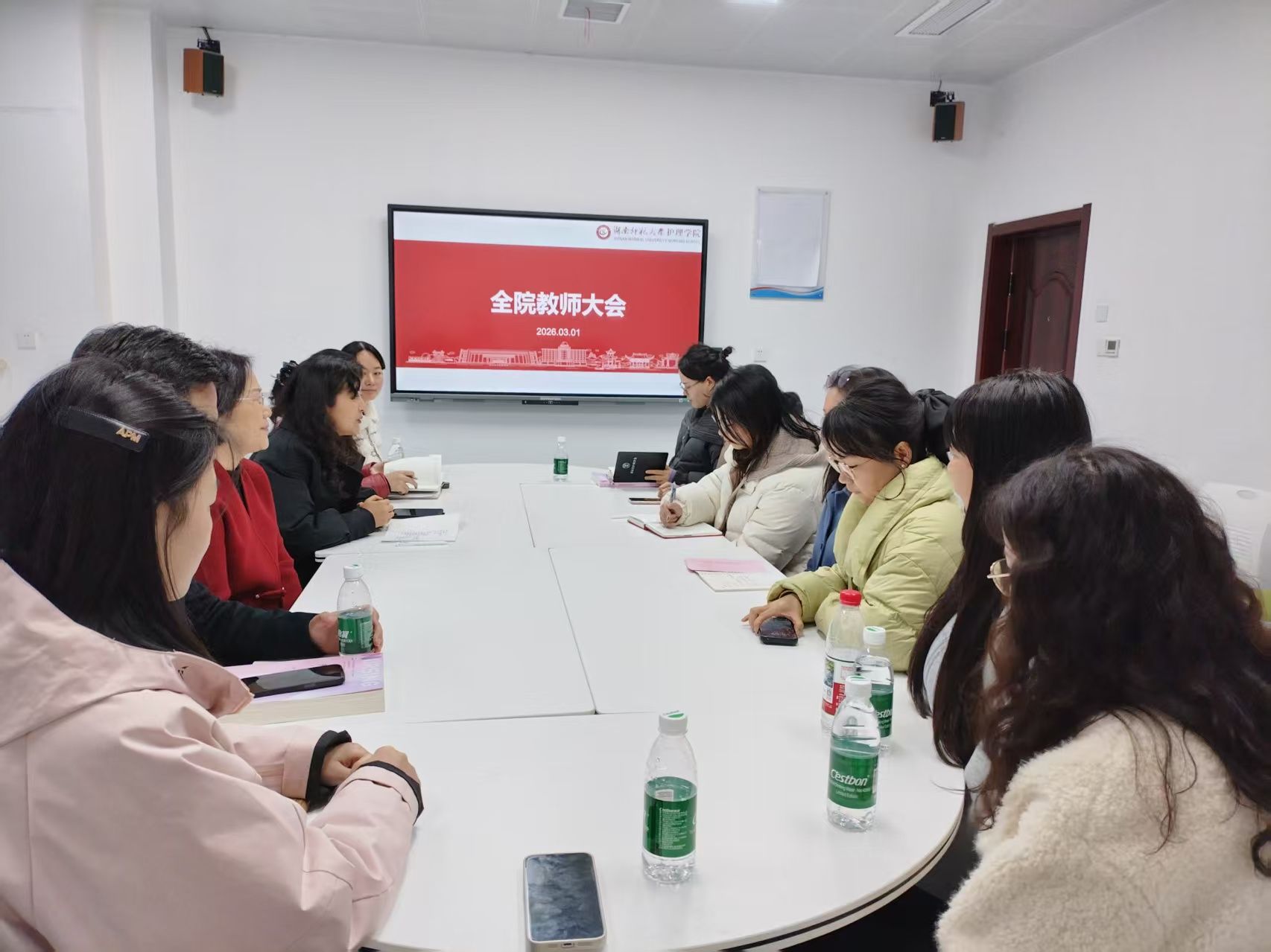 何平平副院长首先对学院过去一年的工作进行了简要总结,随后重点对新学期教学工作进行详细部署。她强调,要以人才培养与课程建设为核心,正式启动2026版人才培养方案的修订工作,后续将同步开展课程教学大纲的修订,持续优化培养体系,提升人才培养质量。在智慧专业建设方面,学院已启动首批4门AI课程的建设,覆盖内科、外科、基护及妇产科等核心课程,后续将分批扩展,推动信息技术与教育教学的深度融合,打造智能化教学新生态。