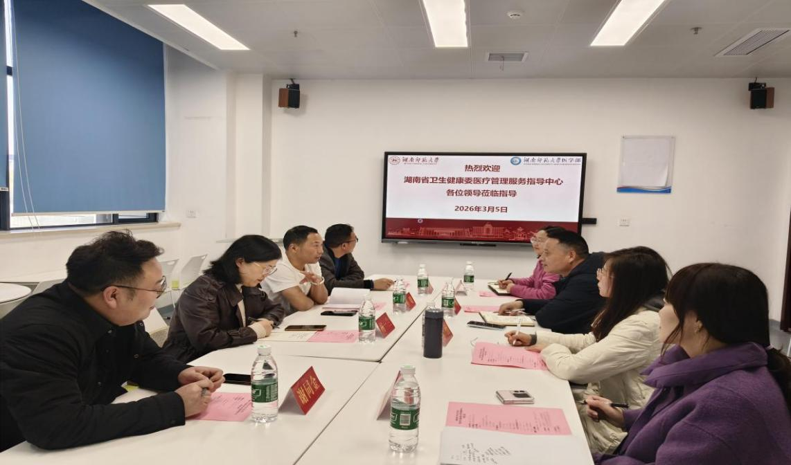 2026年3月5日下午,湖南师范大学公共卫生学院与湖南省卫生健康委医疗管理服务指导中心在医学部综合楼227会议室举行座谈交流会。会议由公共卫生学院副院长徐坤主持,双方相关负责人及代表参加。