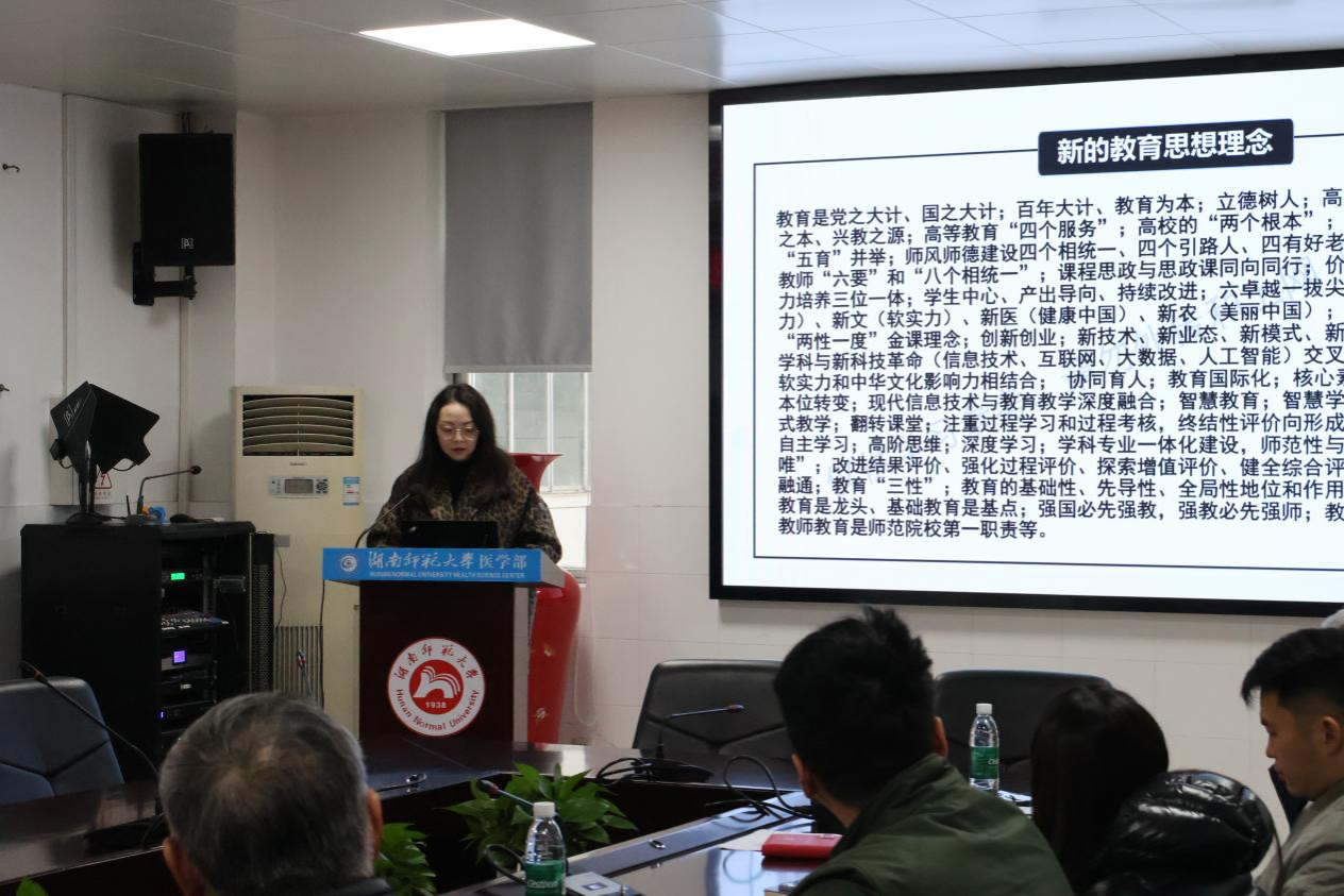 会上,本科教务办主任伍思蓉传达和解读了2026年学校教务处工作要点以及部署。随后,李玉飞副处长就医学人才培养方案课程体系的调整原则和优化要求进行了详细的介绍。会议指出,此次培养方案修订要严格落实新学期工作会议精神,对接中国本科医学教育质量标准及医疗卫生行业需求,进一步深化本科教育教学改革,夯实医学本科教育内涵建设。课程体系方面,将强化专业课程设置,严格控制选修课程审批;各门课程须坚持科学合理原则,注重理论与实践教学比例适当,突出实践教学环节。