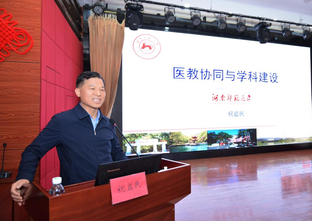 考核评估反馈结束后,医学部党工委书记祝益民以“医教协同与学科建设”为主题,开展专题学术培训。讲座兼具理论深度与实践指导意义,为医院下一阶段学科发展与医教融合工作理清思路、指明方向。祝益民结合医疗卫生事业发展趋势、附属医院建设标准,深入阐释了医教协同在公立医院高质量发展、医学人才培养、学科核心竞争力提升中的重要作用,鼓励医院聚焦优势临床专科,打造区域领先的特色重点学科,以学科建设带动医疗技术提升、人才梯队建设与科研成果转化;紧跟医学发展前沿,把握数字化、智能化医疗发展机遇,将现代信息技术融入医教协同全过程,创新教学模式与科研方法,推动学科建设与医学教育迈向更高质量、更高水平。