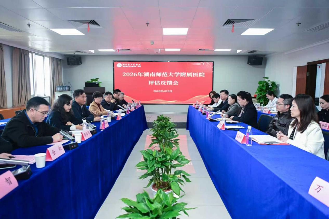 为全面检视附属医院教学工作成效,强化院校协同育人机制,持续推动医学教育质量提升,4 月 3 日,医学部党工委书记、主任祝益民率队一行 11 人,赴湖南师范大学附属第一医院(湖南省人民医院)开展附属医院评估考核工作。医院党委书记赵卫华、党委副书记朱丽琴,临床医学院院长洪秀琴及医院科研、教学、学科建设等相关职能部门负责人、各教研室主任及教学秘书全程参与本次考核。本次评估会议由医学部党工委副书记鄢朝晖主持。