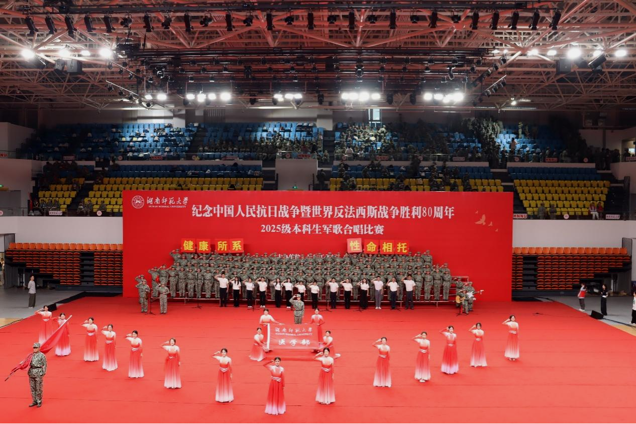 为纪念中国人民抗日战争暨世界反法西斯战争胜利80周年,10月18日下午,我校于江湾体育馆举行了 2025级本科生军歌合唱比赛。医学部党工委副书记鄢朝晖、党工委办公室主任杨洁芳、新生班导师代表、学工办全体老师及医学部120 名新生学子共同参加了此次合唱比赛,最终以出色表现荣获二等奖。