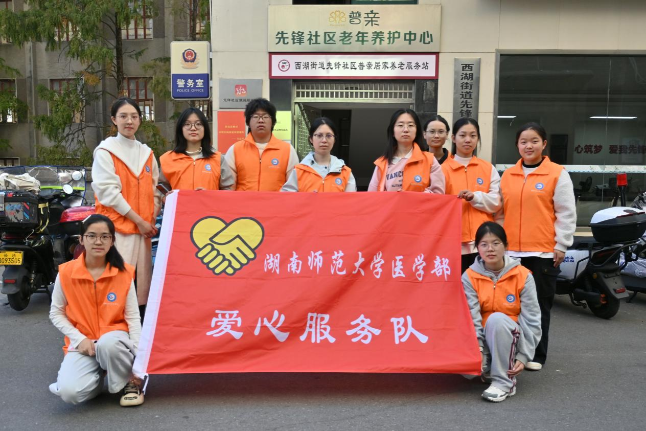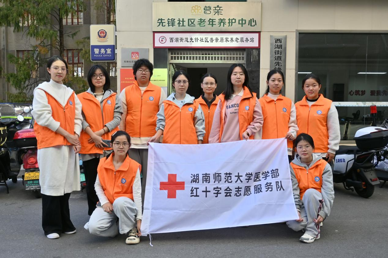 11月30日,医学部青年志愿者工作部在湖南省长沙市岳麓区先锋社区老年养护中心开展了以“尊老爱老,温暖夕阳”为主题的爱心志愿服务活动。湖南师范大学医学部爱心服务队与红十字会志愿服务队的队员参与了此次活动。