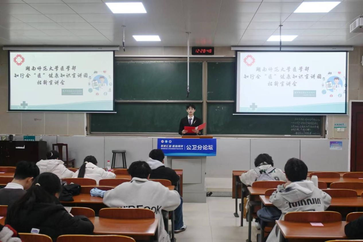 为充实健康科普志愿力量,搭建医学知识实践平台,3月23日中午,医学部团委社会实践部于仁医楼306教室开展了“‘医’路逐光,知行致远”——知行合“医”健康知识宣讲团招新宣讲会。此次宣讲会面向医学部全体同学,旨在介绍讲师团宗旨与特色,招募热爱健康科普、乐于服务奉献的青年学子加入。