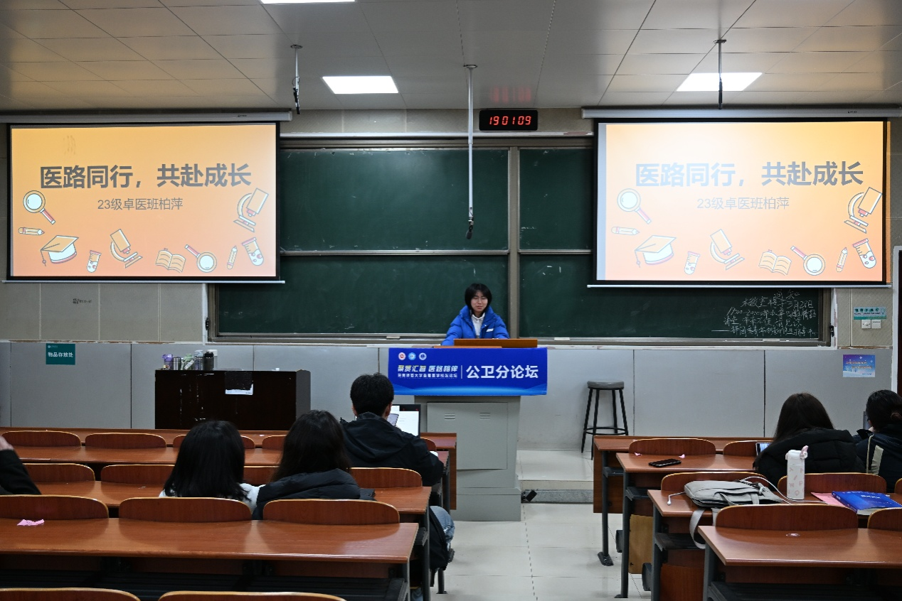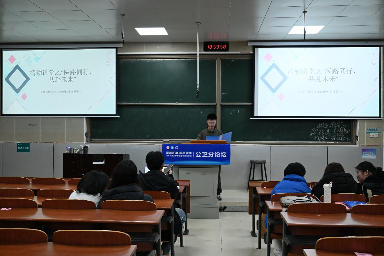 3月28日晚,医学部团委青年创新创业指导中心于医学部306举办以“医路同行,共赴成长”为主题的精勤讲堂。23级卓医班柏萍担任主讲人,部门成员张兆杰担任主持人。医学部部分同学参与此次互动。