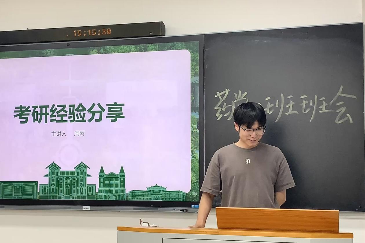 4月9日下午,医学部2023级药学一班于综合楼303教室召开考研主题班会。班会由班导师刘英姿老师主持,22级考研优秀学长周雨受邀分享经验,班级全体同学参会。