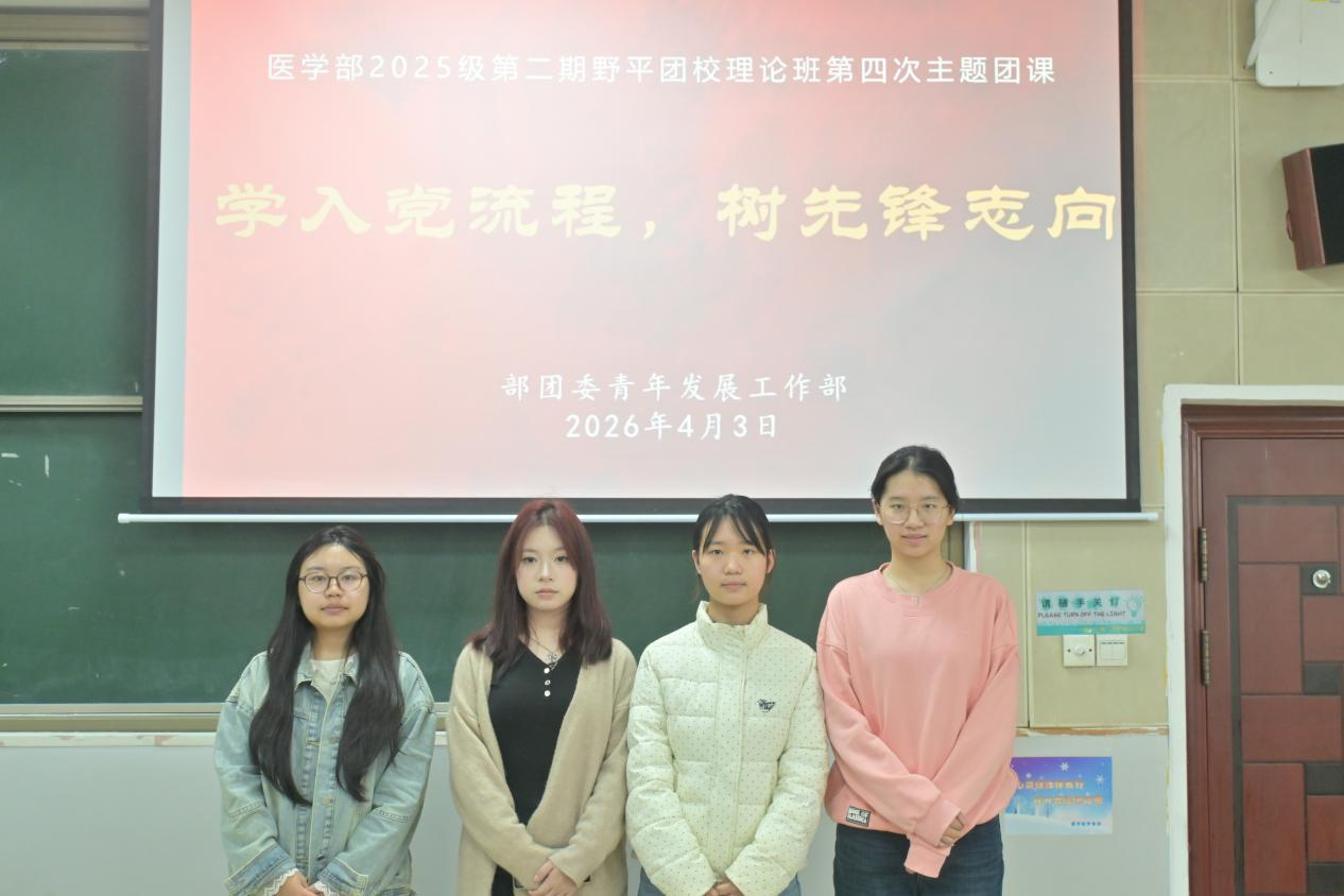 为帮助团校学员系统掌握入党全流程,树立先锋榜样意识,4月3日中午,医学部团委青年发展工作部于仁医楼306开展2025级第二期野平团校理论班第四次主题团课。此次团课以“学入党流程,树先锋志向”为主题,野平团校全体学员参与学习。